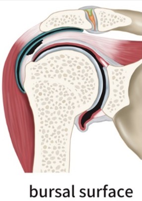 점액낭면측(bursal-side) 파열은 회전근개의 위쪽, 즉 점액낭에 면한 부분(외측)이 손상된 것입니다.